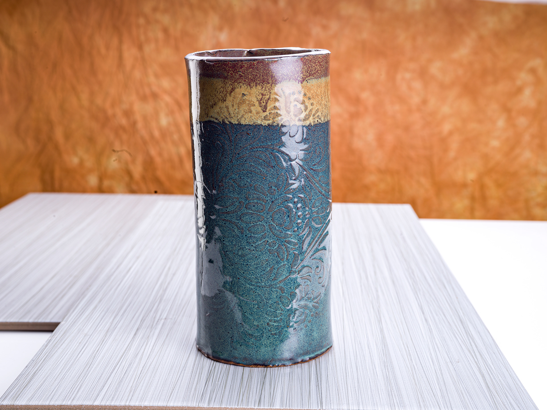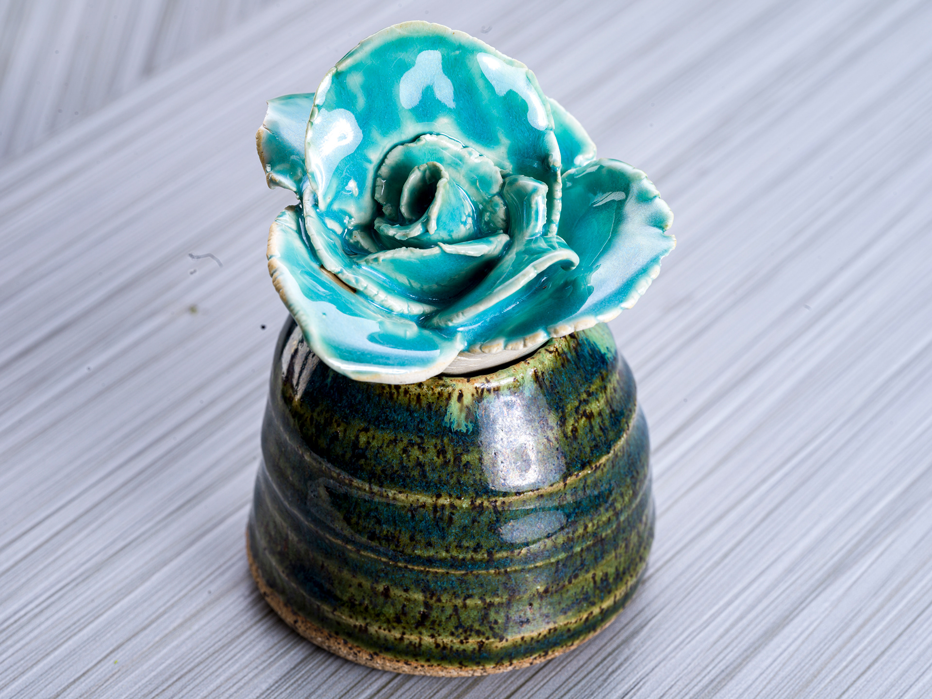Working with clay is a form of relaxation therapy for me. I find solace and serenity in the tactile dance between my hands and the clay. I enjoy feeling the clay in my hands as it whirls on the wheel or as I form it while hand-building. As a blind potter, I genuinely use my hands to guide my vision of what I am creating.